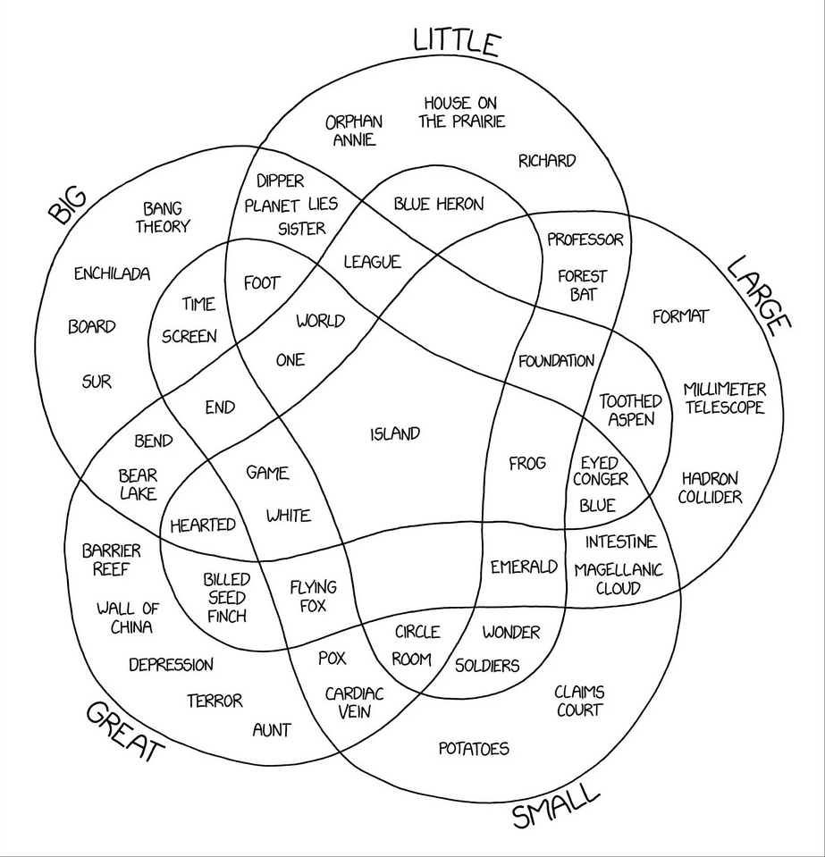 OK, soooo…..what is reality? It all depends on who, or what we ask, no? Each Map of the Universe presents a different version. What more can “reality” be then, but an infinitely colossal Venn Diagram of individual perspectives overlapping in various degrees of consensus reality, within species and between species – degrees that span multiple orders of magnitude – from infinitesimal to local to global to galactic. The more common the overlap, the broader and more inclusive the consensus reality within it – among those who share it – side by side with other, incongruent consensus realities, ad infinitum.